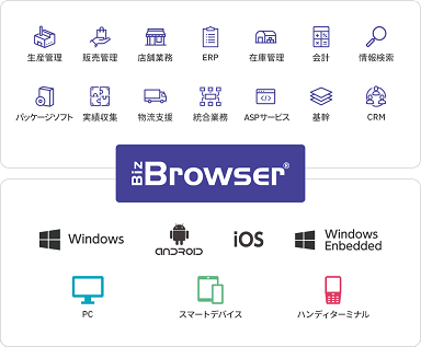 Android、iOS、Windowsの各デバイスに対応、Webシステムの共通プラットフォームとして環境の差異を吸収し、安定、安全、安心のシステム基盤を提供します。