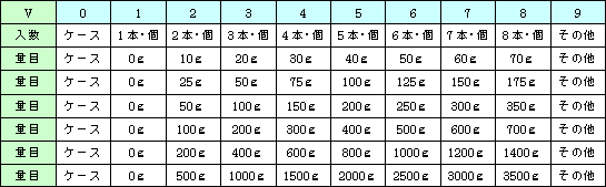 品名毎に量目または入り数の表記を定める。栽培方法区分が「9」の場合は、小売業で自由に使用できる。
